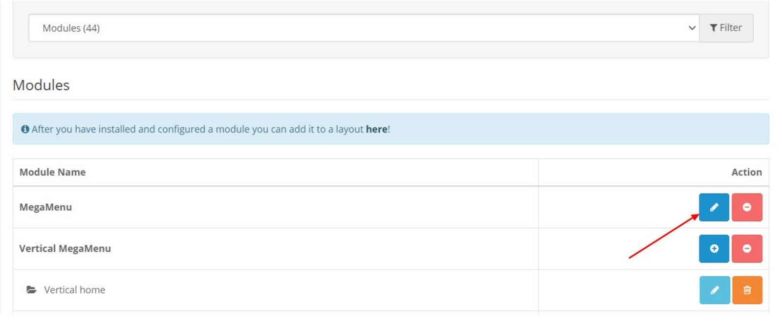 Kliknemo na svinčnik pri MegaMenu, da uredimo naš zgornji meni.