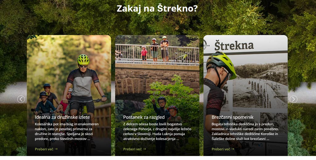 Nova spletna stran Štrekne pomembno presega zgolj informativno funkcijo. Postala je osrednja digitalna točka za promocijo celotne destinacije, kjer se prepletajo lokalna identiteta, trajnostna mobilnost in aktivno preživljanje prostega časa. Uporabniška izkušnja je načrtovana tako, da obiskovalca intuitivno vodi po vsebini in mu omogoča, da hitro najde zase najbolj relevantne informacije – ne glede na to, ali načrtuje obisk prvič ali se na pot vrača.
